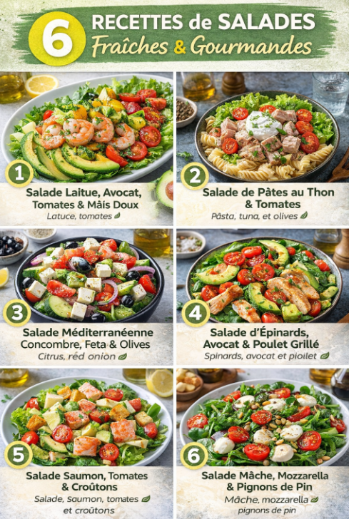 🥗 6 Recettes Complètes de Salades Fraîches et Gourmandes