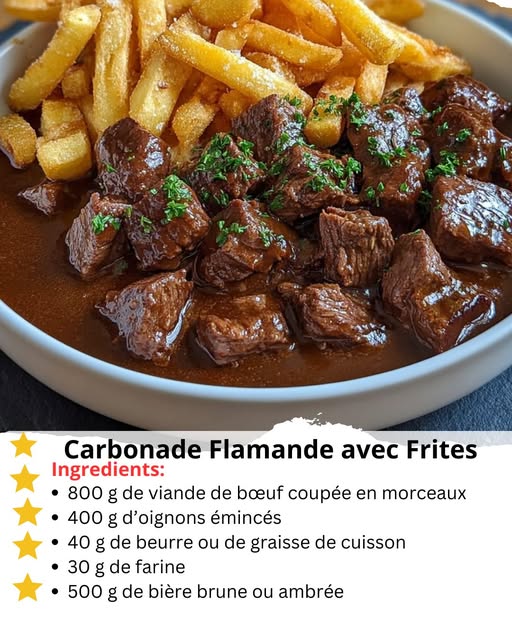 Ingrédients en grammes pour une carbonade flamande avec frites pour quatre personnes