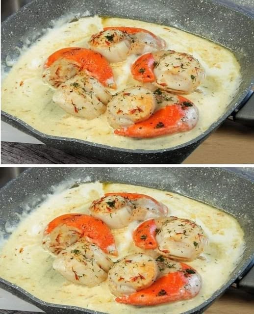 đ Cassolette de Saint-Jacques aux Champignons et Sauce CrĂ©meuse au Vin Blanc