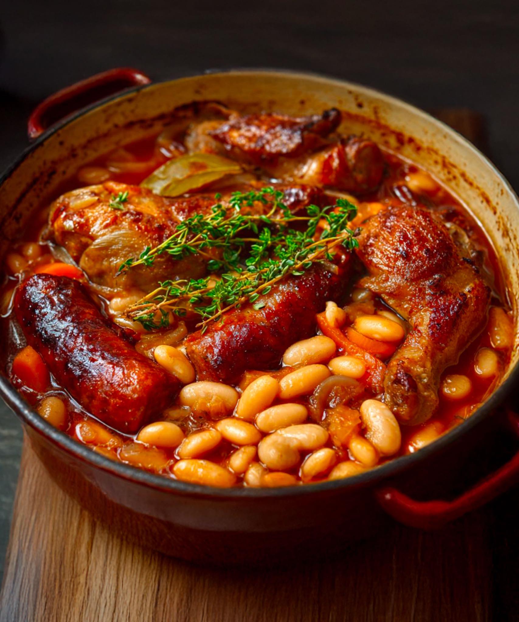 Préparer un cassoulet authentique, c’est accepter de prendre son temps. Les haricots blancs, longuement trempés puis mijotés, deviennent fondants et s’imprègnent des sucs des viandes. Le confit de canard, les saucisses de Toulouse et les morceaux de bœuf apportent profondeur et richesse, tandis que les aromates viennent subtilement équilibrer l’ensemble. Rien n’est laissé au hasard : chaque étape participe à la construction de ses saveurs complexes.