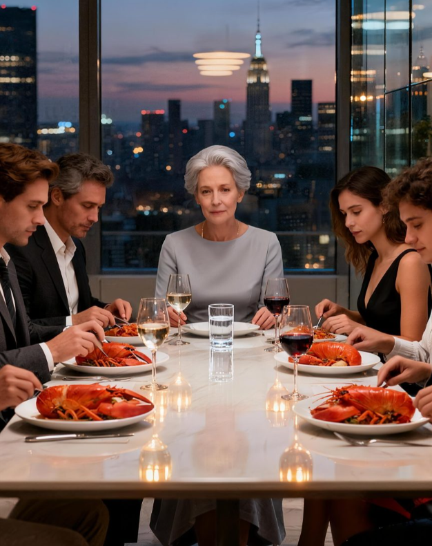Ma belle-fille m’a tendu un verre d’eau en disant : « C’est tout ce que tu auras », tandis que sa famille se régalait de homard et de boissons. Mon fils a ajouté : « Maman, reste à ta place. » J’ai simplement souri, et quelques instants plus tard, lorsque le chef est apparu, un silence de mort s’est abattu sur la pièce.