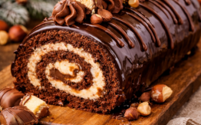 🍫 Bûche roulée chocolat façon Kinder Bueno Ultra moelleuse, crème fondante & glaçage miroir brillant Cette bûche roulée au chocolat…