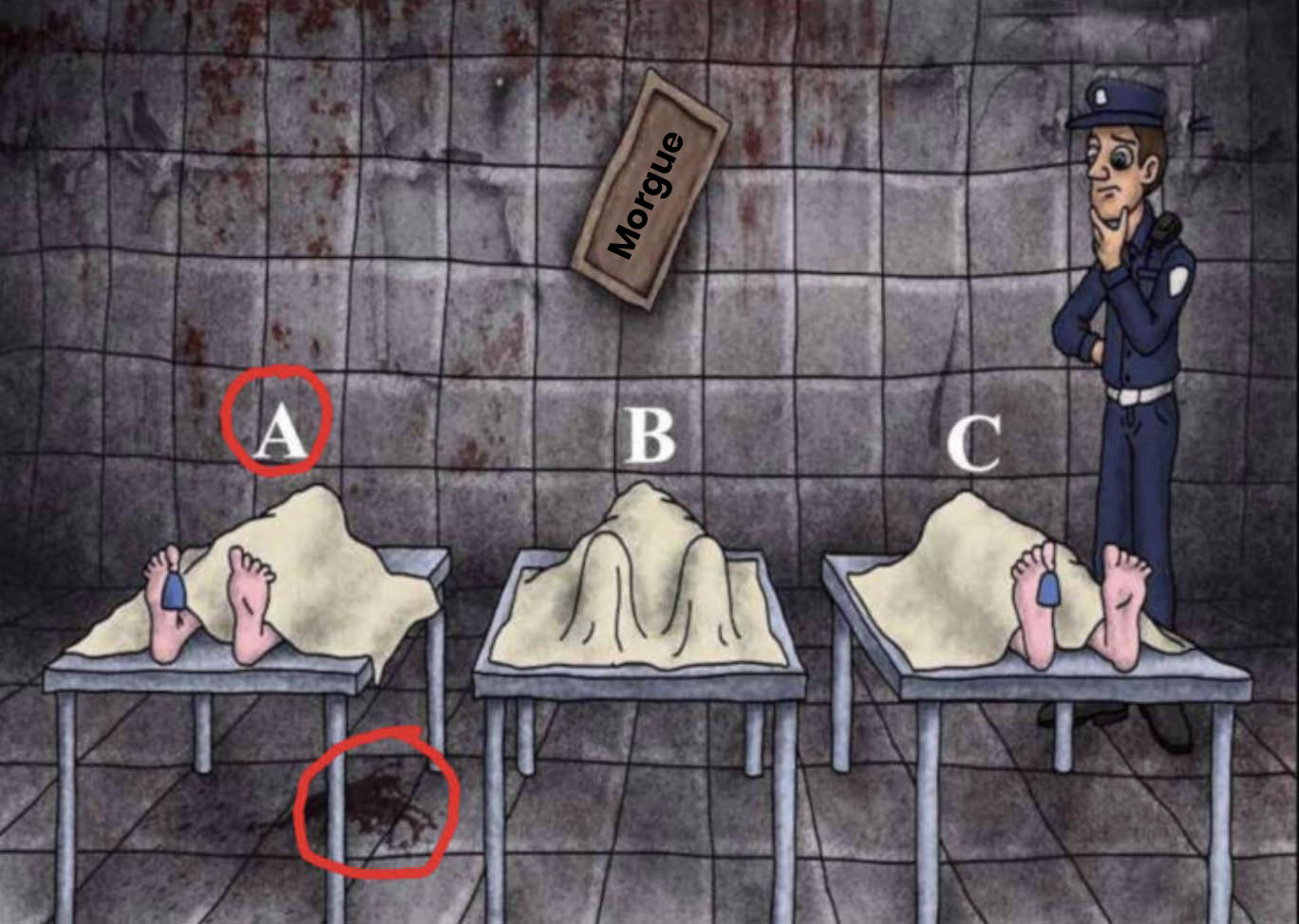 Prêts pour la réponse ? C’est la personne A qui est encore en vie. Et la clé du mystère se cache… juste sous la table.