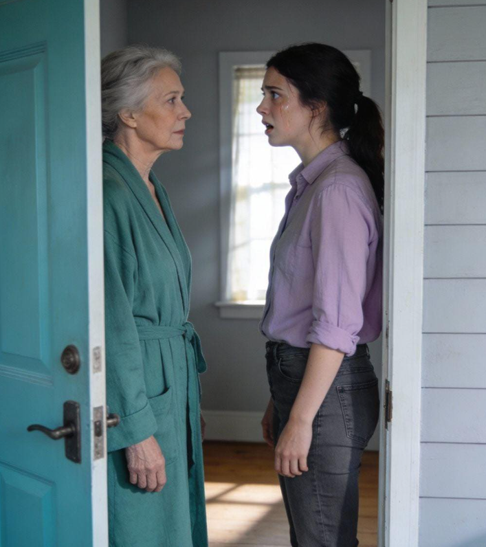 Elle semblait détendue, les cheveux encore humides, tenant une tasse de notre cuisine. Elle sourit poliment, comme si c'était moi qui dérangeais.