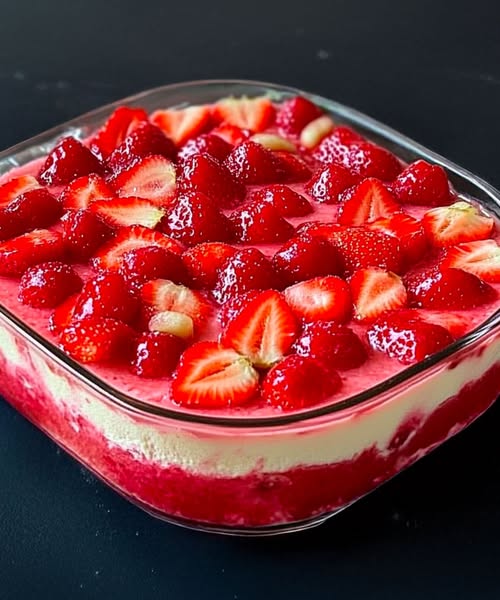 Rien n’évoque mieux la douceur des beaux jours qu’un dessert aux fraises, frais et délicatement parfumé. Ce gâteau froid aux fraises sans gélatine ni crème est né de cette envie de légèreté : une gourmandise simple, naturelle, qui met le fruit au cœur de la recette. Ici, pas d’ingrédients compliqués ni de textures lourdes — seulement l’équilibre parfait entre moelleux et fraîcheur.