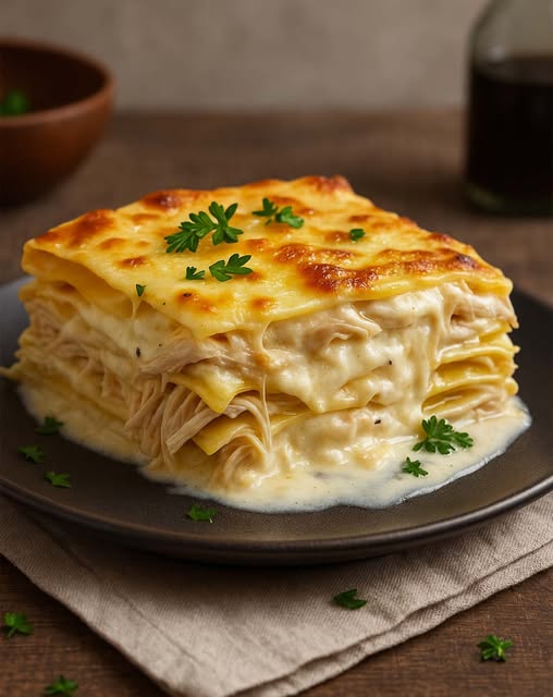 Ce qui rend ces lasagnes si irrésistibles, c’est le parfait équilibre des textures et des saveurs. Le poulet effiloché est d’une tendreté incomparable, tandis que les champignons apportent une note terreuse qui se marie idéalement avec la douceur de la sauce blanche. Le mélange de mozzarella fondante et de parmesan croustillant sur le dessus ajoute une richesse crémeuse et une chaleur réconfortante à chaque bouchée. Cette recette est également idéale pour utiliser des restes de poulet cuit, tout en transformant un plat simple en une version élégante.