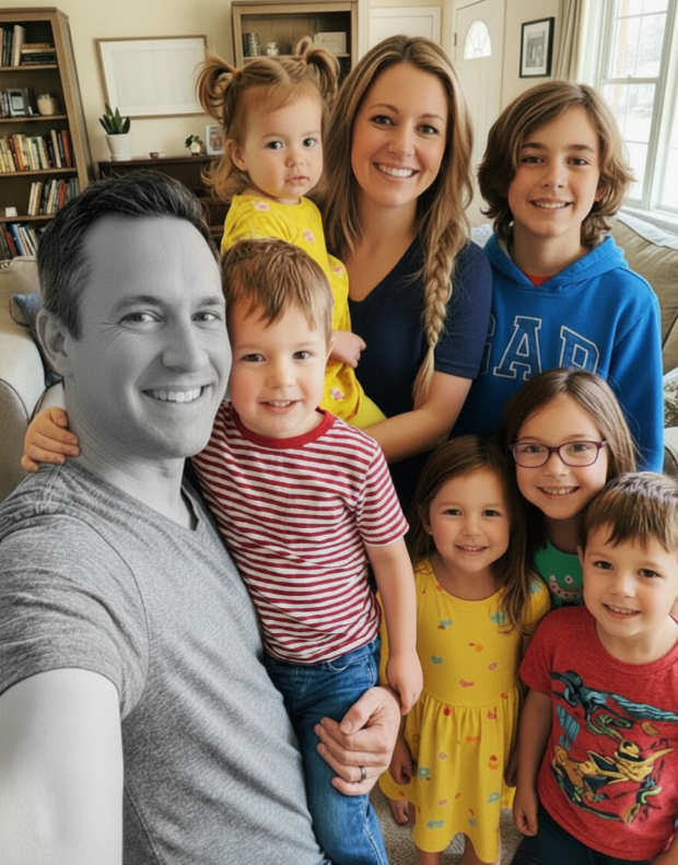 Nous avions six enfants : Caleb, dix ans ; Emma, huit ans ; les jumelles Lily et Nora, six ans ; Jacob, quatre ans ; et la petite Sophie, qui venait d'avoir deux ans lorsqu'il est décédé.