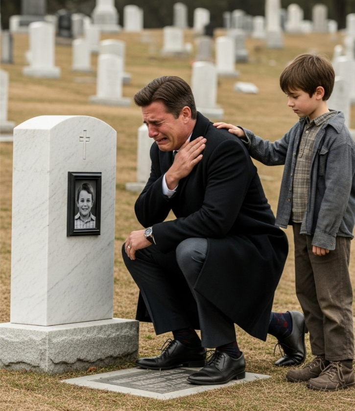 « Monsieur… Ce garçon a joué au foot avec moi hier », murmura l’enfant au cimetière. À cet instant, le PDG prospère qui croyait que son fils n’avait jamais quitté l’hôpital comprit que le chagrin ne lui avait jamais tout dit.