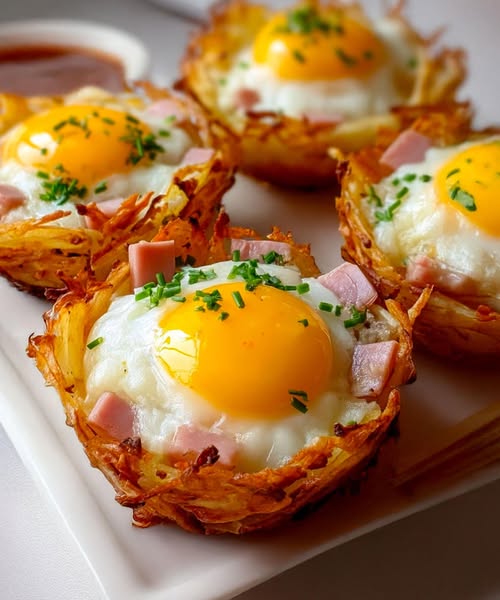 Quand le besoin de réconfort se fait sentir, rien de mieux qu’un plat fait maison, simple et généreux. Ces nids de pommes de terre garnis d’œufs, de jambon et de fromage réunissent tout ce que l’on aime : du croustillant, du fondant, et une touche de gourmandise. En plus d’être délicieux, ils sont aussi esthétiques, parfaits pour impressionner sans trop d’effort.