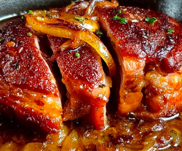 Dans cette recette, on la sublime avec une cuisson au four, à basse température, enveloppée d’une sauce parfumée aux oignons fondus et à l’ail confit. Le mariage de ces ingrédients simples rappelle les plats mijotés d’antan, cuisinés avec amour et patience, où chaque bouchée apporte une chaleur réconfortante. C’est un plat familial, convivial, qui sent bon la cuisine authentique.