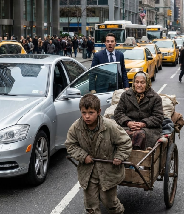 Un chariot métallique cabossé avançait lentement le long du trottoir, poussé par un éboueur. Assise dessus, maigre, voûtée, enveloppée dans des couches de vêtements sales comme des objets abandonnés, se trouvait une femme aux cheveux emmêlés et au regard vide et absent.