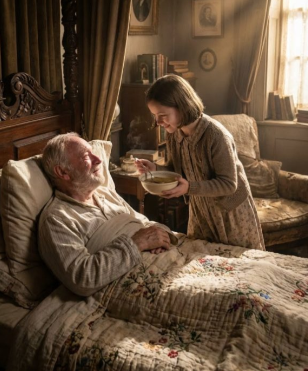 Des larmes coulaient silencieusement sur ses tempes tandis qu’il mangeait, chaque cuillerée apaisant une douleur amère et tenace. La fillette sourit en le voyant terminer.